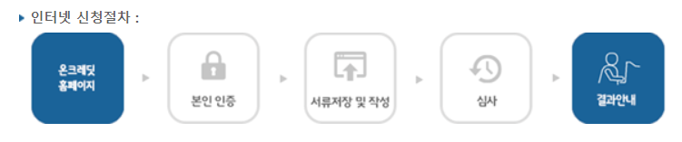 인터넷에서는 온크레딧 홈페이지를 통해 본인인증, 서류저장 및 작성, 심사의 절차를 거치게 되며 해당 프로그램 이용이 불가한 경우도 있으니 반드시 개인신용지원 홈페이지에서 보다 정확한 내용을 확인하셔야 하겠습니다.