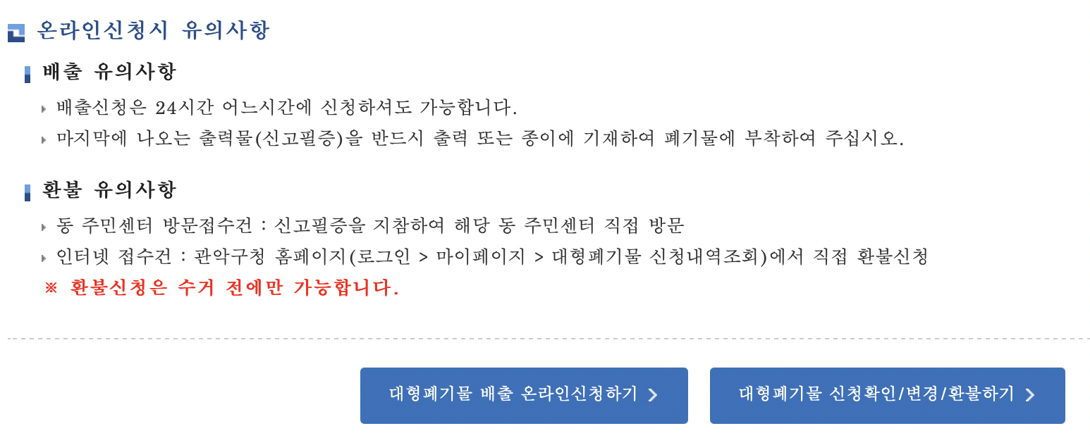 오늘은 간단하게 관악구의 대형폐기물 인터넷신고 및 배출방법에 대해서 알아보았습니다. 이 포스팅이 도움이 되셨으면 좋겠습니다!