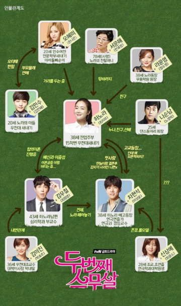2015년 방영되어 최고 시청률 7.2% 기록한 '두번째 스무살'은 '하노라' 역을 맡은 배우 최지우가 전업주부에서 갑자기 대학 새내기가 되어 갓 20살이 된 친구들과 소통과 멘붕이 반복되는 명랑한 드라마 인데, 최지우의 tvN 드라마 첫 출연작으로 화제를 모았었고, 2년만에 드라마에 출연하는 손나은, 쇼미더머니에 출연했던 김민재가 출연하는 것으로 많은 관심을 받았던 드라마 입니다.