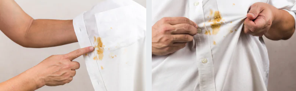 예 1 - 옷에 기름이 묻었어.