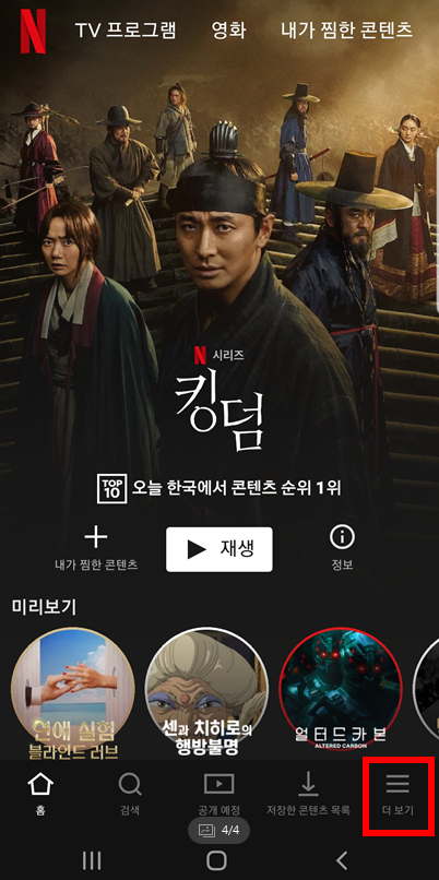마찬가지로 킹덤의 유혹을 뿌리치고 하단의 더보기 버튼을 눌러줍니다.