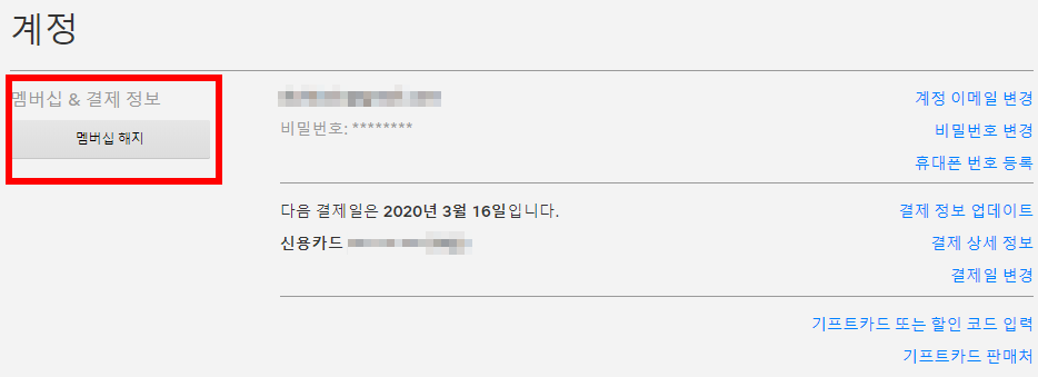 멤버십 해지를 클릭합니다.