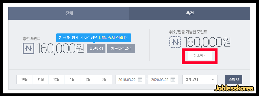 실수로 네이버 페이 포인트를 충전했거나, 네이버 페이 포인트를 충전 후 사용하지 않는다면 다시 현금으로 인출해 유용하게 쓰도록 하자.