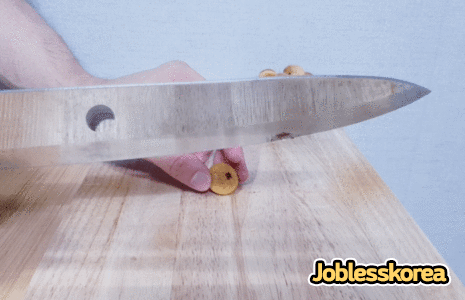 레스팅을 과정을 거치는 동안 홈런볼 내부의 초콜릿이 잘 멜팅 되었는지 단면을 잘라 확인 해 보았다.