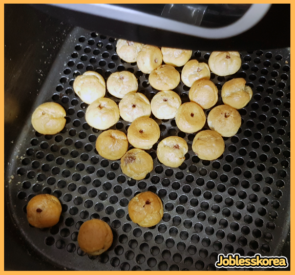 조리법은 따로 설명할 필요가 없을 정도로 간단하다. 에어프라이어에 홈런볼을 넣고 180도에서 3분간 구워주면 된다. (예열따윈 필요없다)