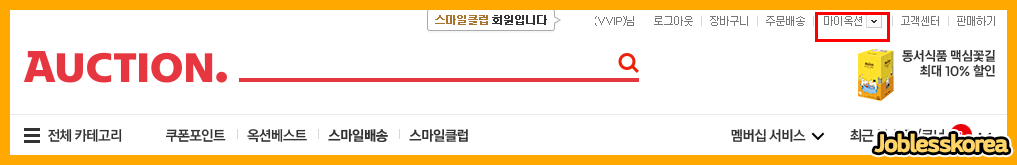 PC화면에 접속해 상단의 마이 옥션을 클릭합니다
