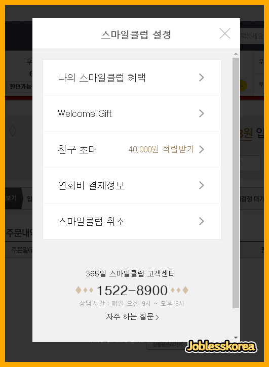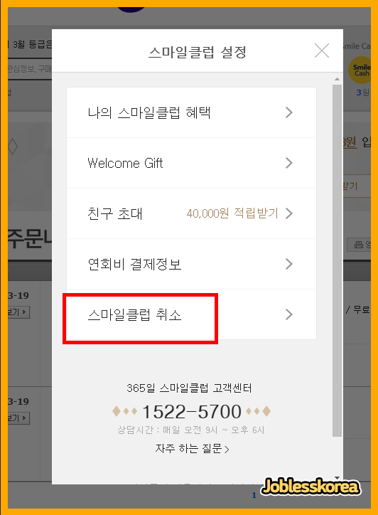 스마일클럽 취소 메뉴에 들어가 해지절차를 진행합니다.