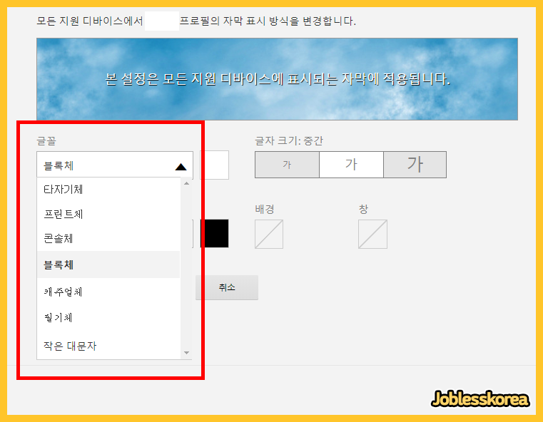 (일부 기기들은 자막 커스텀을 해주어도 적용이 안되는 경우가 있습니다.)