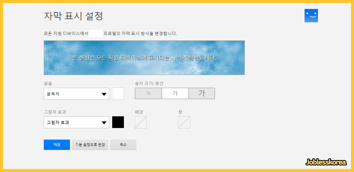 (일부 기기들은 자막 커스텀을 해주어도 적용이 안되는 경우가 있습니다.)