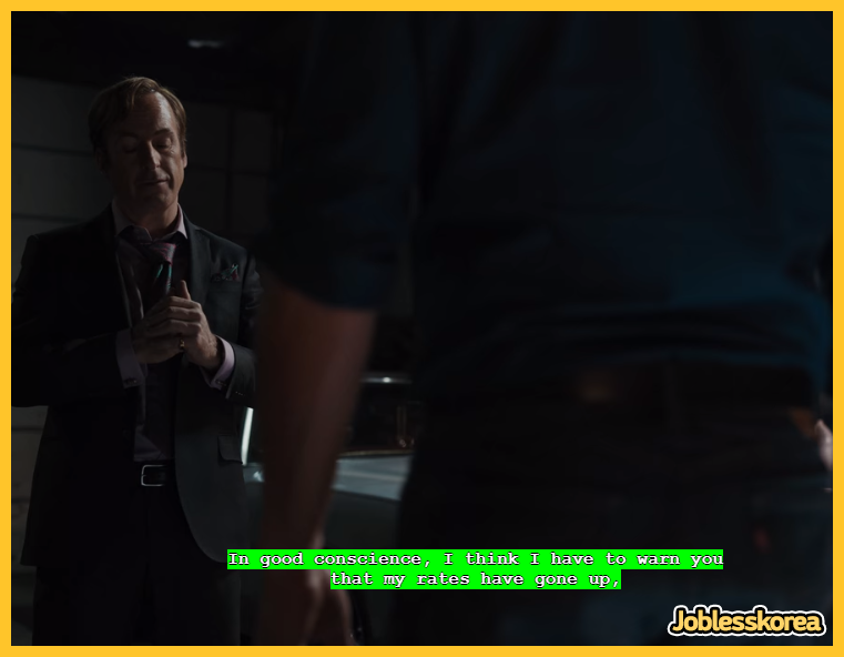 제가 요즘 즐겨보고 있는 미드 '베터 콜 사울' 의 한 장면 입니다. 제 입맛대로 설정한 자막이 잘 나오고 있습니다!