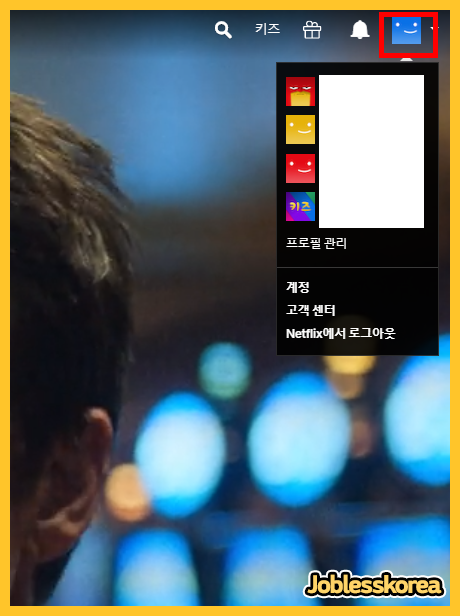 먼저, 넷플릭스에 들어가서 내 프로필 아이콘을 클릭합니다.