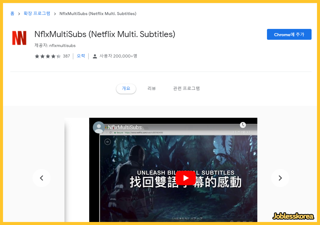 1. NflxMultiSubs - 간단하게 한영자막을 동시에 띄우는 확장프로그램