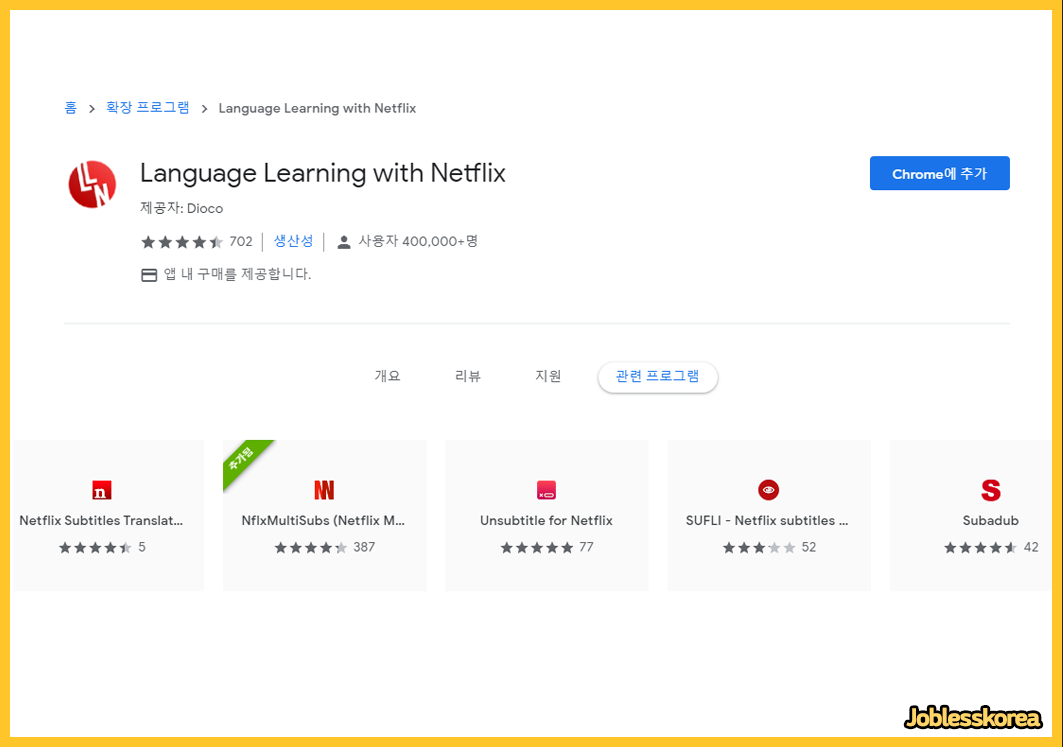 2. Language Learning with Netflix - 언어 학습목적으로 나온 크롬의 확장 프로그램