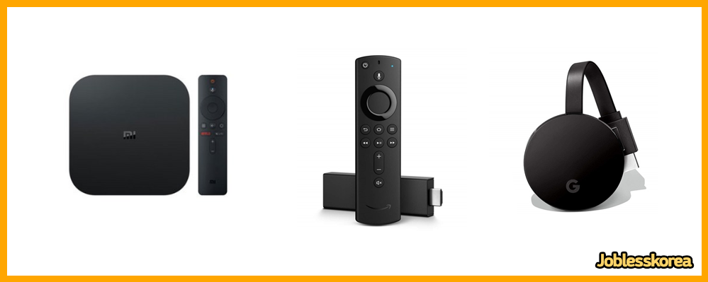 TV박스에 대해 알아보니 많이 사용하는 제품은 애플TV, 샤오미 미박스 시리즈, 아마존 파이어스틱 시리즈, 크롬캐스트, 순으로 인기가 있었습니다.