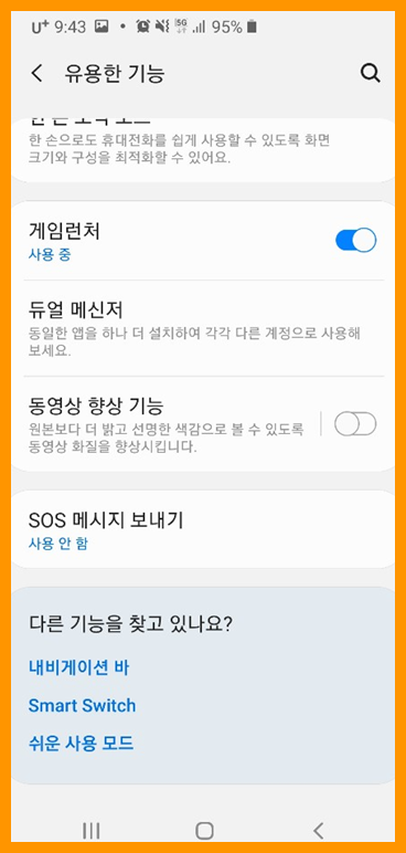 유용한 기능을 선택 후, 쭉~ 스크롤을 내리면 듀얼 메신저 메뉴가 보입니다.
