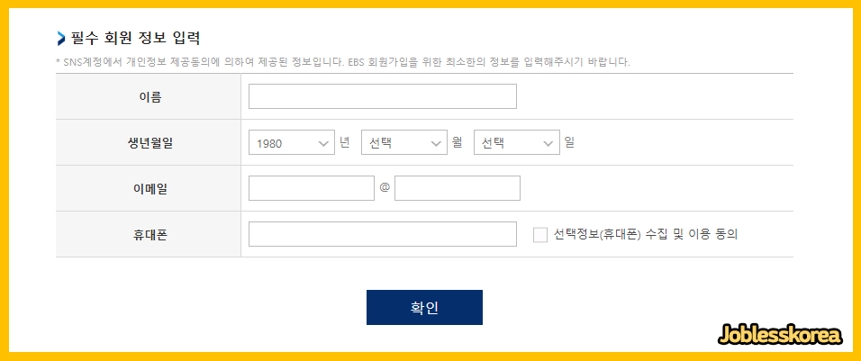 이럴때는 네이버나 카카오톡 등 SNS 계정으로 EBS 온라인 클래스에 가입을 하면, 휴대폰 문자인증 없이 좀 더 간편하게 가입을 진행할 수 있습니다.