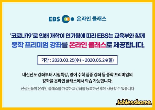 이비에스 온라인클래스 웹사이트에 사용자가 많이 몰리고 있어, 회원가입 인증문자가 오지 않거나, 서버가 느려 가입절차도 제대로 되지 않을때가 있습니다.