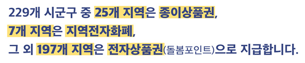 아동돌봄쿠폰은 지역별로 지급방식이 약간씩 다른데요, 대부분의 지자체에서는 전자상품권으로 지급되지만 32개의 지자체에서는 종이상품권이나 지역전자화폐로 지급됩니다.