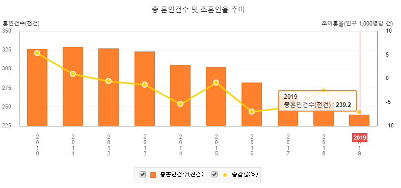 상식적으로 일부일처제가 효율적이라고 보기에는 혼인건수 대비 정말 너무나도 높은 이혼률을 보여주고 있다.